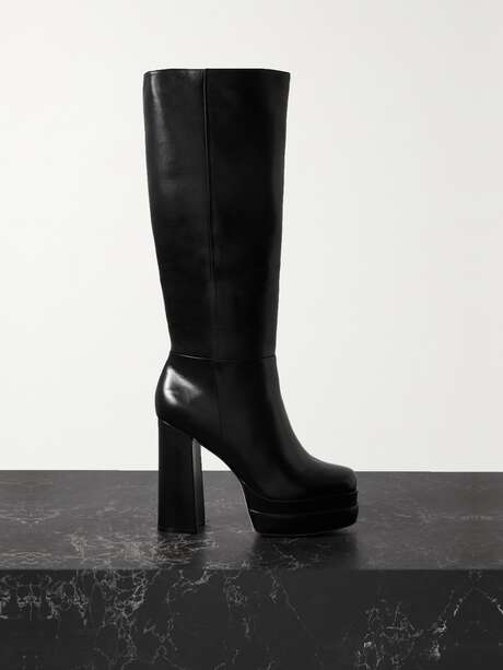 EXCLUSIVE AT NET-A-PORTER. Porte & Paire's knee boots are modeled on '60s styles. They're made from smooth black leather and set on a stacked platform sole with a block heel for added lift. We love them with mini or midi hemlines.