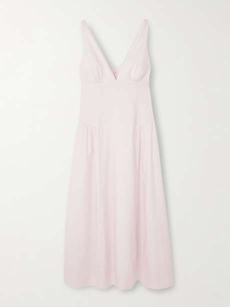 Think of Posse's 'Lindie' midi dress as a one-stop solution to elegant summer dressing. It's cut from soft cotton and tightly gathered at the bust and waist to define the shape. The gently pleated skirt sways softly with your movements.