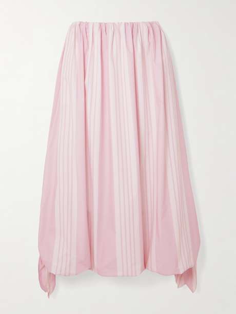 Posse's 'Rosie' midi skirt is softly gathered at the hem for a subtle bubble effect. It's made from striped cotton and has adjustable ties at the side – leave them undone to create a slit.