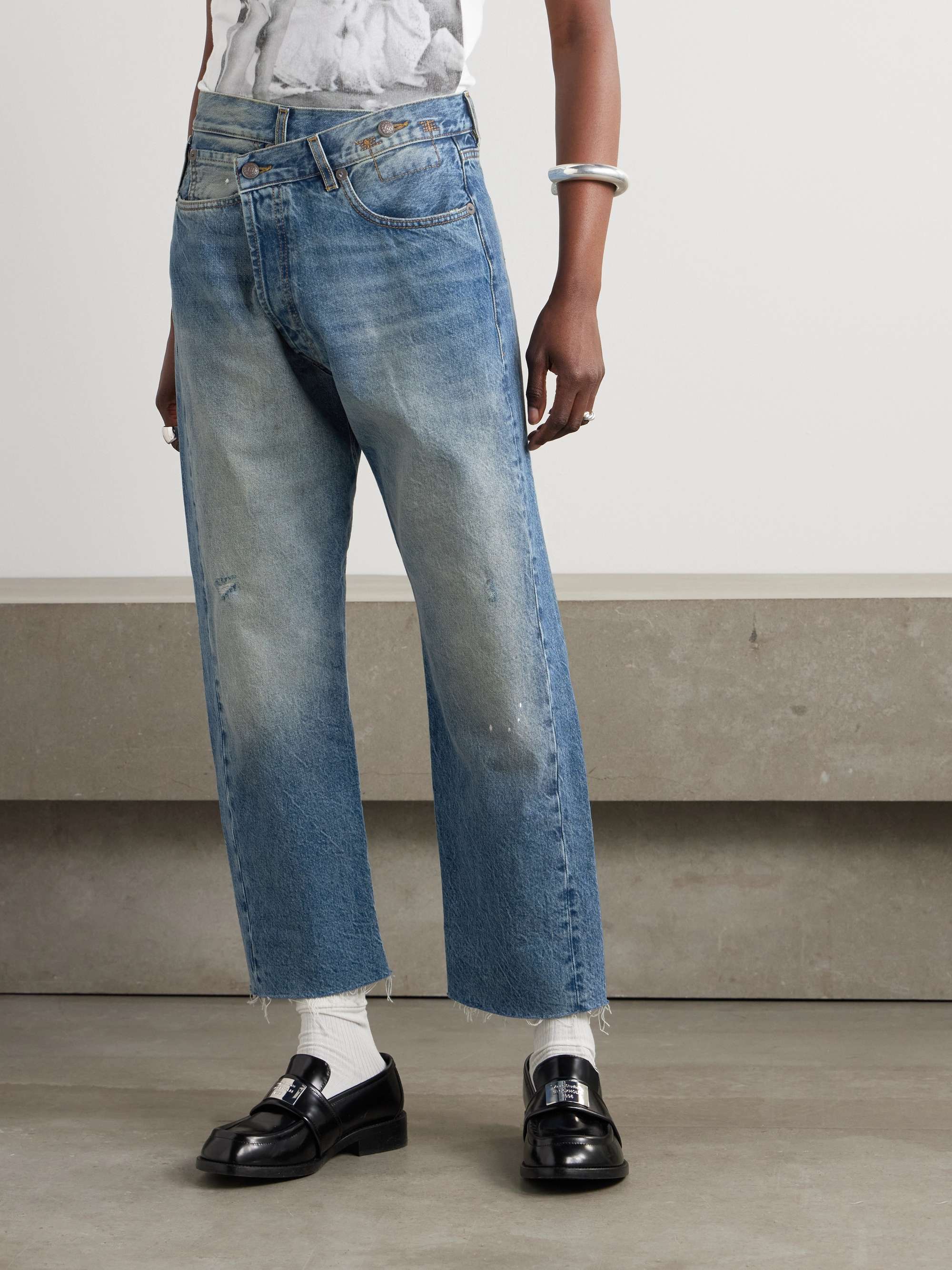 R13 Crossover asymmetric distressed high-rise wide-leg jeans