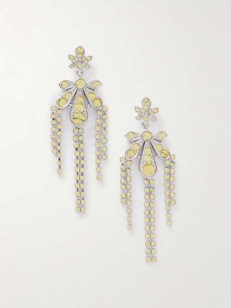 EXCLUSIVE AT NET-A-PORTER. Rabanne's earrings are set with shimmering yellow crystals that sparkle prettily in the light. Made from silver-tone brass, they have an ornate silhouette with fringing that falls below the jaw.