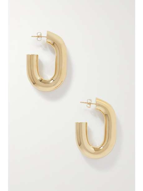 Paco Rabanne's gold-tone hoop earrings are supersized, just like the rest of the brand's 'XL Link' designs. They secure with butterfly fastenings and are neatly engraved with emblems at either end. Wear them with a white tank and denim, or any of the label's dresses.