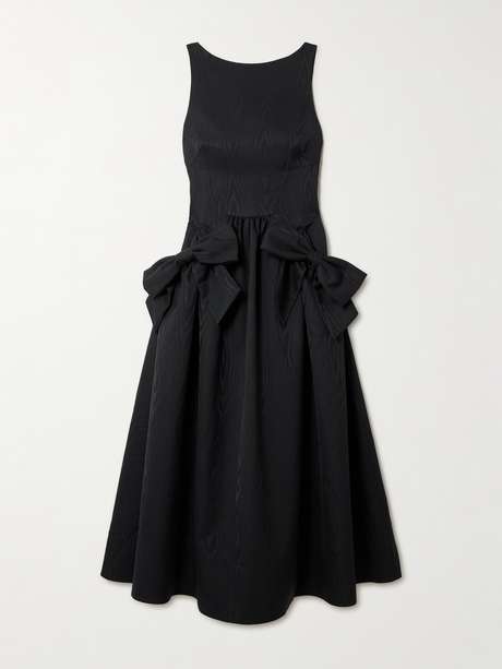 Rebecca Valance's 'Narcissa' midi dress evokes the charm of '50s styles. Made from lustrous moire, it's fitted through the bodice before falling to a voluminous, gathered skirt that's embellished with bows. Wear yours with point-toe pumps and a box clutch.