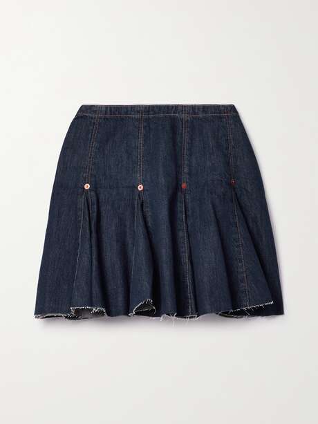 RE/DONE Flounce pleated frayed denim mini skirt