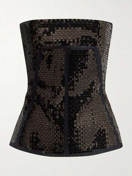 Equal parts industrial and glamorous, Rick Owens' strapless top will make a powerful statement after dark. Made from denim embellished with glistening sequins, it's shaped to contour your body for a sculptural effect. Wear yours with leather pants or a mini skirt.
