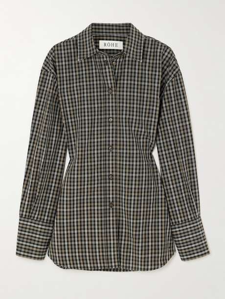RÓHE's take on the classic shirt feels sharp and modern. Cut from cotton-poplin in a checked pattern, it's designed with a fitted bodice for a more sculpted, tailored presence. Style it with relaxed trousers or a sleek skirt to emphasize the defined shape.