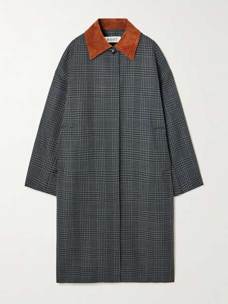 RÓHE's wool coat brings a refined feel to cold-weather dressing. Cut for a relaxed fit from insulating wool, it's patterned with classic checks and features a suede collar that adds a hint of texture.