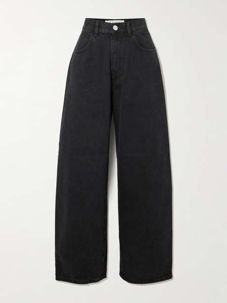 RÓHE's jeans rework classic styles through a sculptural lens. They're cut from black-wash denim with a high-rise and fall into wide, barrel-shaped legs. They pair effortlessly with crisp shirts and knits.