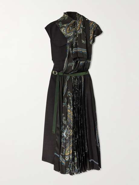 Sacai's dress is a striking fusion of utility and bohemian style. Cut from wool, it's overlaid with a paisley-print crepe panel which loops around the neck like a scarf and falls to a pleated skirt. The flap pocket and hiking-inspired grosgrain belt enhance its contemporary feel.