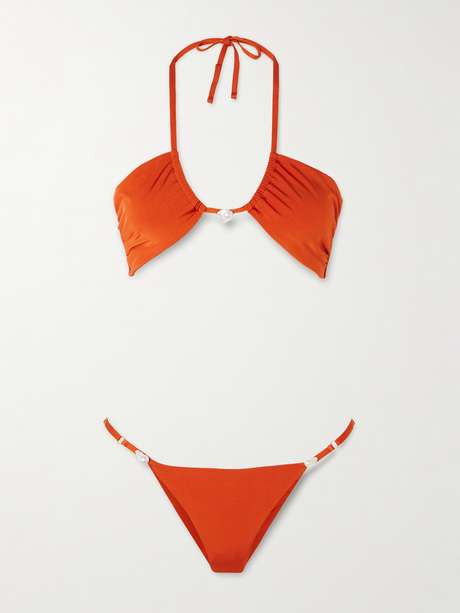 SARA CRISTINA Bahia pearl-embellished stretch-ECONYL® halterneck bikini