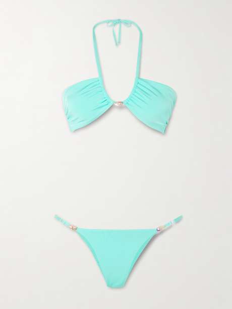 SARA CRISTINA Bahia pearl-embellished stretch-ECONYL® halterneck bikini