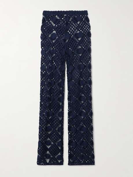 Sara Cristina's 'Playa' pants are crocheted from cotton in a pattern that resembles blazing suns. Offered in a versatile navy shade, they're fitted with a comfortable elasticated waistband and have a wide-leg shape. Temper the sheerness with a tonal bikini.