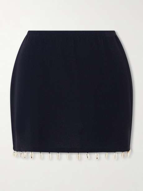 Playful and tactile, the 'Sun' mini skirt by Sara Cristina is defined by its clean silhouette and delicate cowrie shell embellishments. Subtly evocative of coastal landscapes, it brings texture and movement to warm-weather dressing. Style it with a simple top for a relaxed finish.