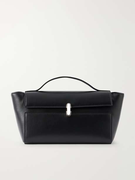 EXCLUSIVE AT NET-A-PORTER. Savette's debut 'Symmetry' collection celebrates "geometry in its purest forms: parallel and perpendicular lines". Part of the sleek range, this 'Pochette' tote has been handmade in Italy from leather and minimally detailed with gleaming silver-tone hardware. The interior is perfectly sized to fit your phone, keys and cardholder.