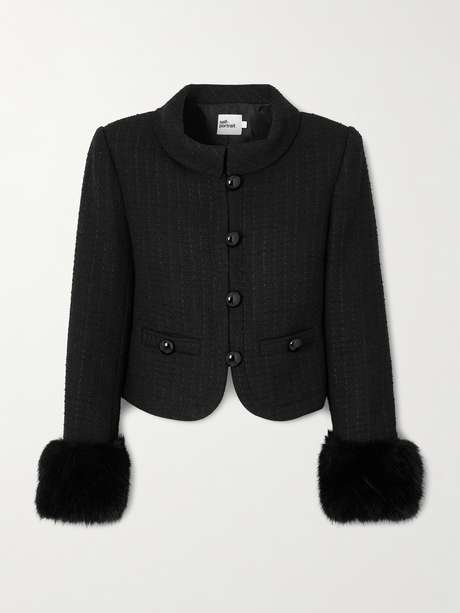 SELF-PORTRAIT Cropped plush-trimmed bouclé-tweed jacket