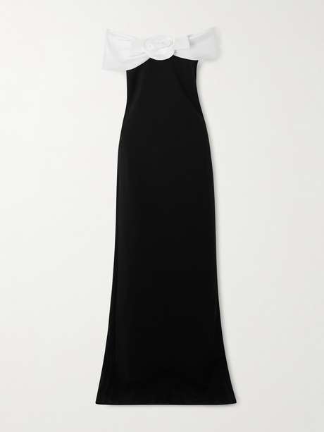 SELF-PORTRAIT Off-the-shoulder open-back faille-trimmed crepe maxi dress