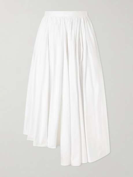 SELF-PORTRAIT Asymmetric gathered cotton-poplin midi skirt