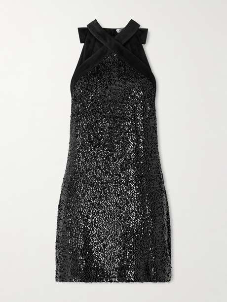 SIMKHAI Isla velvet-trimmed sequined jersey halterneck mini dress