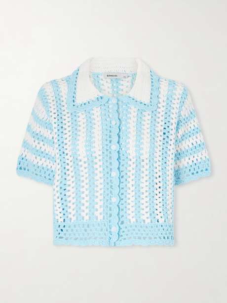 Simkhai's 'Stanton' shirt is hand-crocheted in 'Buttercream Mango' tonal-yellow shades. It has a striped open-knit pattern and is finished with scalloped edges. Wear it with the matching skirt for a playful result.