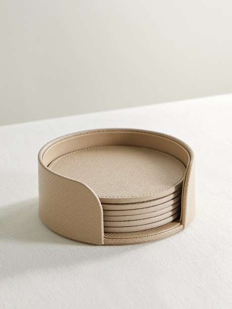 Smythson's coaster set is made from the brand's signature 'Panama' leather, which has a recognizable cross-grain texture. They're housed in a matching holder and come in a set of six, so you can easily dot them around your living room or lay them for brunch.