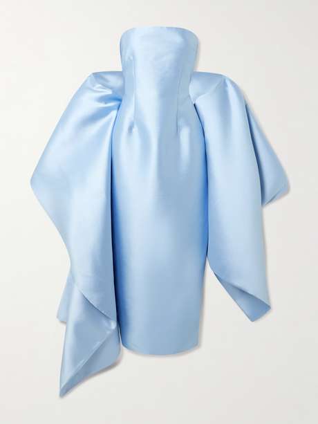 Solace London's 'Renee' dress will have all eyes on you. Cut from lustrous satin in a cool 'Ice Blue' hue, it's darted to contour your waist and has a dramatic cape-effect overlay for just the right touch of drama.