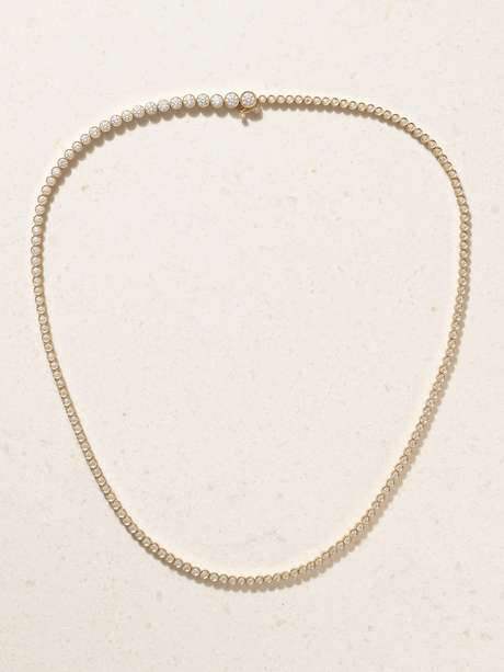Sophie Bille Brahe says that it's her most minimal, refined pieces which require the most meticulous craftsmanship. Inspired by traditional tennis styles, this 18-karat gold necklace features 4.82-carats of sparkling brilliant-cut diamonds carefully set so they graduate in size - it elegantly wraps around so the smallest gemstone meets the largest. Layer yours with other delicate chains, or pair it with the matching bracelet.