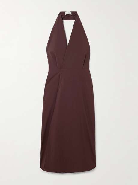 ST. AGNI's dress is designed to subtly define your waist with the wrap profile. Cut from cotton-blend poplin, it has a halterneck and flares out a loose, A-line maxi skirt.
