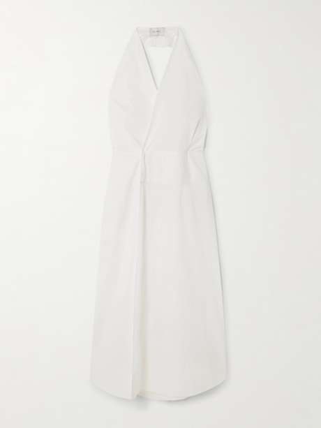 ST. AGNI Cotton-blend poplin halterneck wrap maxi dress