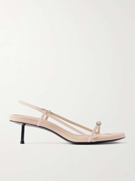 ST. AGNI's 'Petit Belt' sandals have barely-there straps, which are at once architectural and delicate. Evoking '90s minimalism, they're made from leather with a square toe and kitten heel.