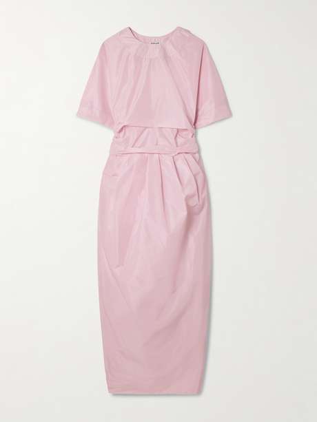 STAUD's 'Michelina' midi dress has a beautiful wrap-effect back with a voluminous bow that'll look great in photos. It's cut from crisp taffeta with folds around the waist and an elegant tulip skirt. We think the pastel 'Puff Pink' shade looks so pretty, no matter the season.