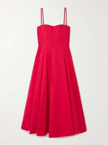 STAUD's 'Wylie' dress is found across the brand's collections, and we can see why – it's timeless. This version is paneled from cherry-red cotton-blend poplin with internal taping for a secure fit on the bust, and a pretty pleated skirt.