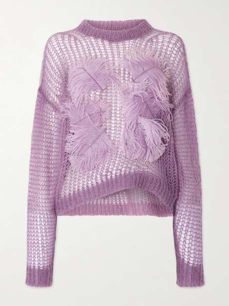 THE ATTICO Feather-trimmed crochet-knit mohair-blend sweater