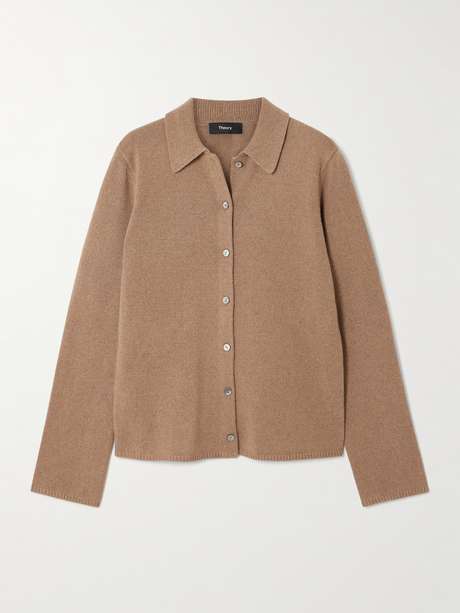 Theory's cardigan balances elegance and ease. It's finely knitted from soft cashmere blended with a hint of wool and finished with a row of glossy mother-of-pearl buttons. We love the point collar, too.