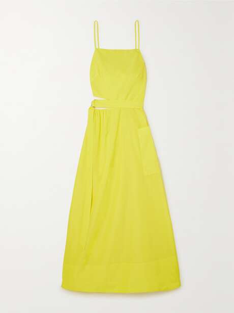 The highlighter-yellow shade is just one of the many reasons you'll gravitate towards Tibi's midi dress. It's made from taffeta with slashed cutouts through the fitted bodice that reveal glimpses of skin and comes with a belt that can be adjusted for a tighter fit. Draw attention to the square neckline with a tennis necklace.