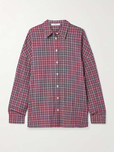 Modeled on menswear styles, Tibi's shirt has a loose shape emphasized by dramatically dropped shoulders. It's cut from cotton-flannel that's patterned with checks and fastens with lustrous buttons. Style yours alone or open over a tank.