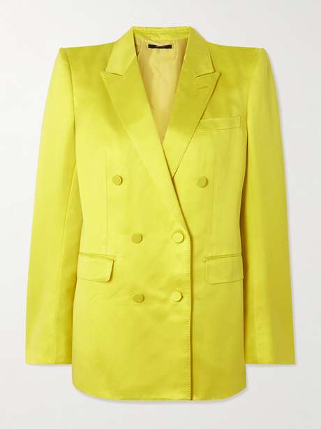 Haider Ackermann's debut for TOM FORD balanced dark glamour with impossible-to-ignore pops of color. This jacket is made from neon-yellow cotton and silk-blend hammered-satin and is expertly tailored in a boxy, double-breasted shape. Wear yours with the matching pants for maximum impact.