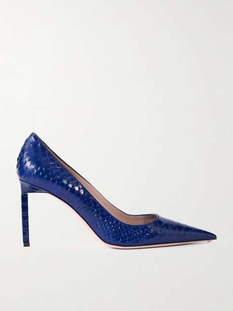 Few do high-octane glamour quite like TOM FORD. These pumps are made from snake-effect leather with sleek pointed toes and 85mm stiletto heels detailed with the label's gold-tone 'T' emblem.