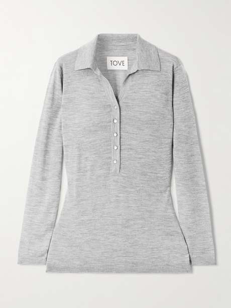 Camille Perry and Holly Wright started TOVE to create "a minimal, refined wardrobe for the modern woman". This 'Austine' polo shirt captures that essence, with a sleek, slim shape made from fine wool and silk-blend. Leave a few buttons undone for a deeper neckline.