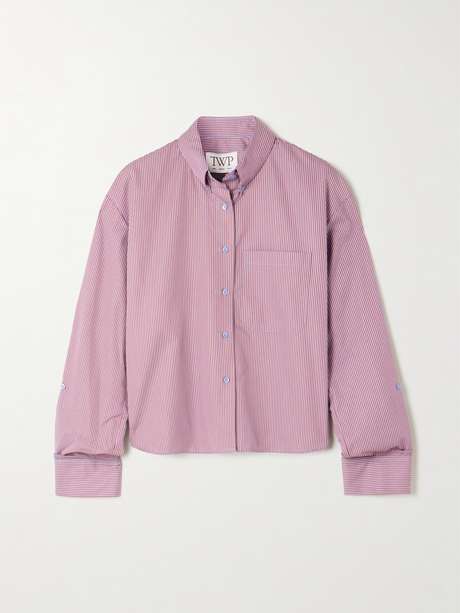TWP J.D. cropped striped cotton-poplin shirt