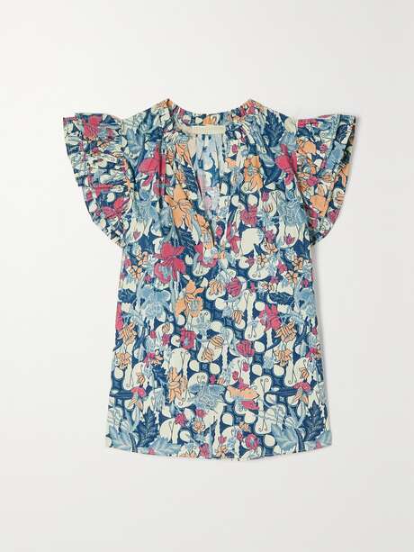 ULLA JOHNSON Elena ruffled floral-print cotton-poplin blouse
