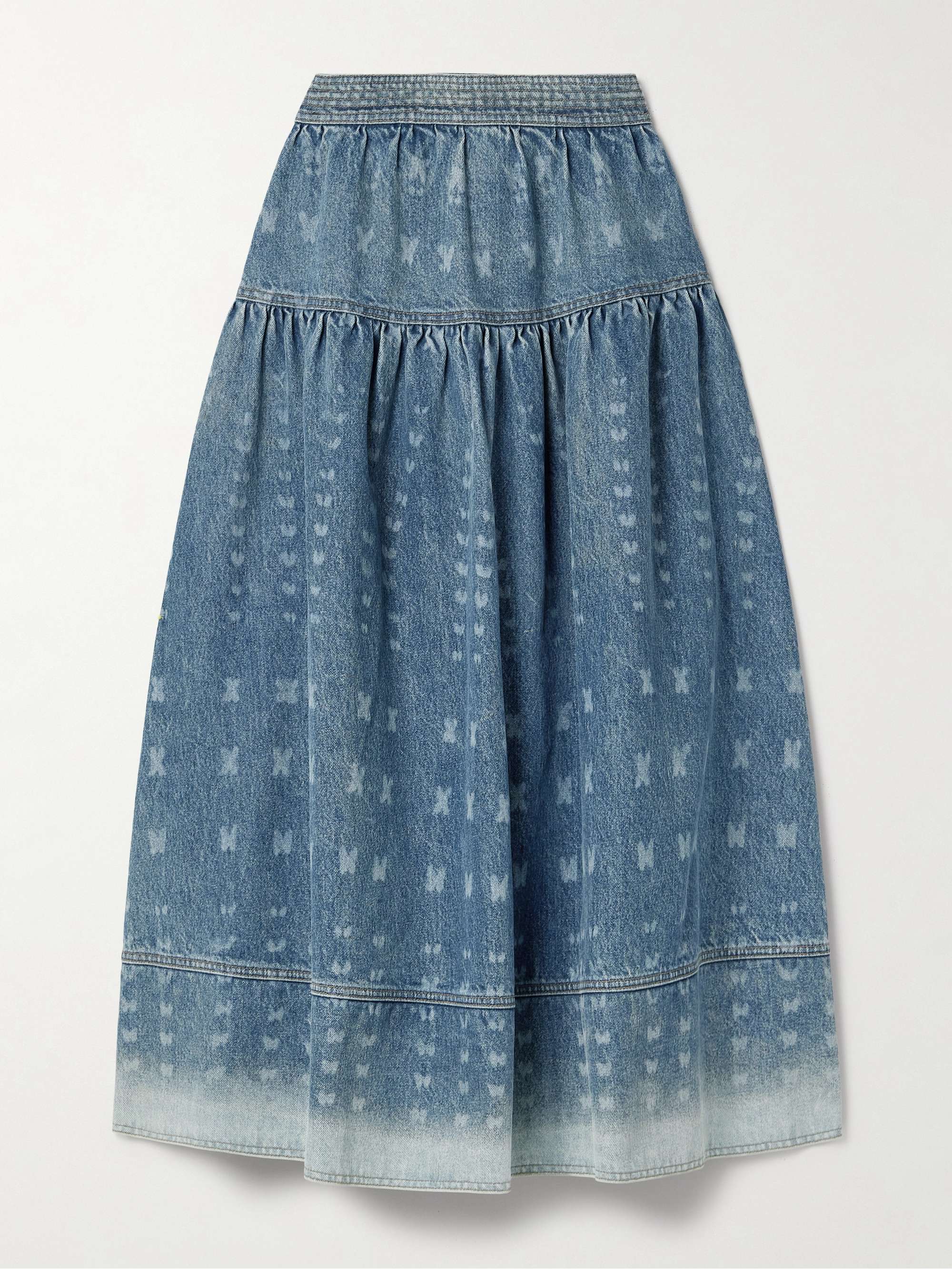ULLA JOHNSON Astrid bleached tiered denim maxi skirt