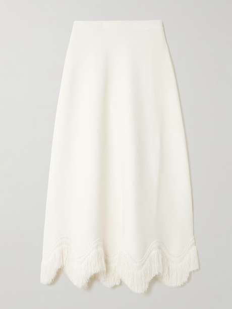 ULLA JOHNSON Pauline scalloped fringed knitted midi skirt
