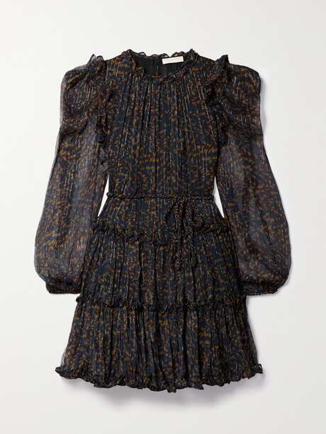 ULLA JOHNSON Gaelle ruffled printed metallic silk-chiffon mini dress