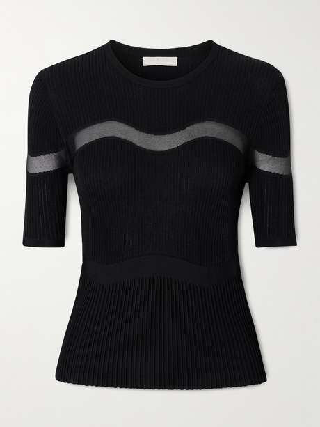 ULLA JOHNSON Ayla mesh-paneled ribbed-knit top