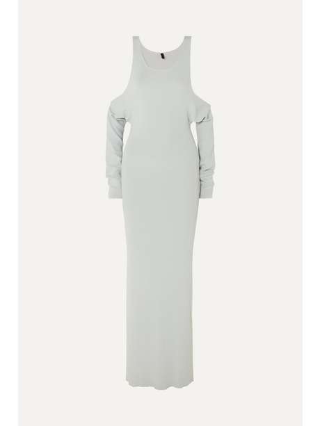 A chocolate version of Unravel Project's cold-shoulder dress was worn on the label's '90s-inspired Spring '19 runway, immediately following this style. Updated in gray, this version is made from soft cotton and cashmere-blend and has long, slouchy sleeves and a lightly frayed hem. It's cut for a comfortably slim fit and has a generous back split for ease of movement.