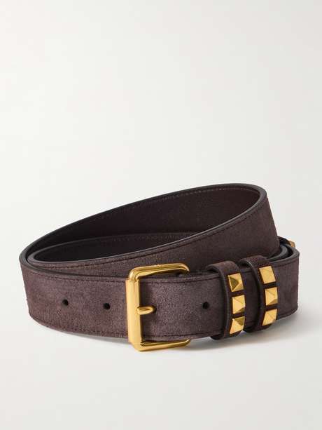 Fans of Valentino Garavani will instantly recognize the signature 'Rockstuds' on this belt. It's been made in Italy from soft suede and fastens with a gold-tone buckle to match the hardware.