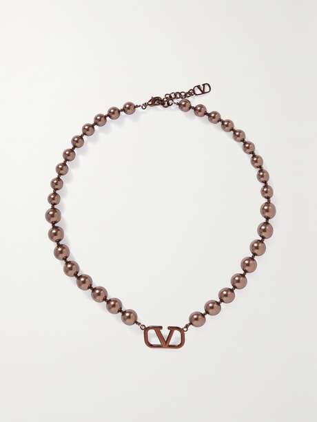 Valentino Garavani's coated-metal necklace is the perfect mix of contemporary and classic. It's made up of bronze colored beads to resemble a string of pearls and tipped with the same iconic 'VLOGO' that debuted in 1968. Show yours off above a low-cut neckline or open shirt.