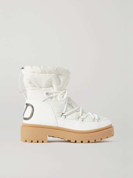 Valentino Garavani is directing its unmistakably glamourous outlook into après-ski style this season. Made from white shell and leather, these boots have a thermal lining and elasticated cuffs, so you can draw them close around your ankles. The cleated soles will help you keep your footing on slippery ground.