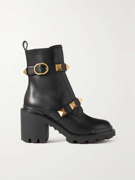 Valentino Garavani's boots have been made in Italy from smooth black leather. They're embellished with signature 'Roman Stud' hardware and have side zippers to make sure they're easy to get on and off.