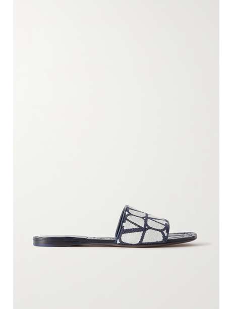 VALENTINO GARAVANI Toile Iconographe leather-trimmed cotton-canvas jacquard slides